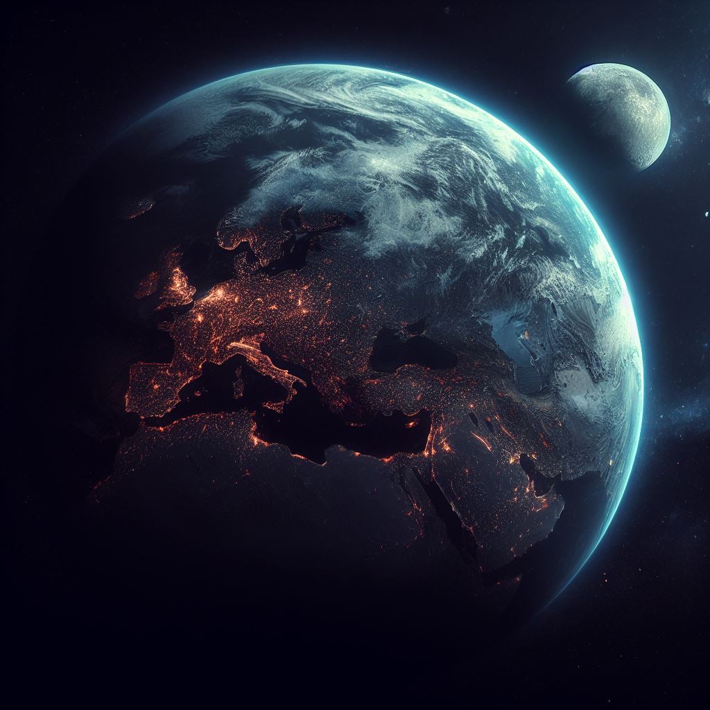 The song 'Apollo 8' is a tribute to the NASA moon mission of 1968, the first to leave earth orbit, where the astronauts recited a passage from the bible. I have used some poetic licence there so the quote from Genesis is pulled around to fit; but it is close. In the final section (from 4:15) the astronauts see the whole earth and contrast the night and day sides.